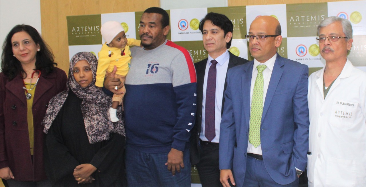 Gurugram|HL A rare and complex liver transplant was carried out by a team of proficient doctors at Artemis Hospitals, Gurugram. They performed a 14-hour long rare surgery called Monosegment (Segment 3) liver graft transplant on a one-year-old girl child from Saudi Arabia. Baby Fatima (name changed) underwent an extremely rare living donor Liver transplant (Monosegment), where only 1 out of 8 portions of liver was used to provide a new liver to the baby.