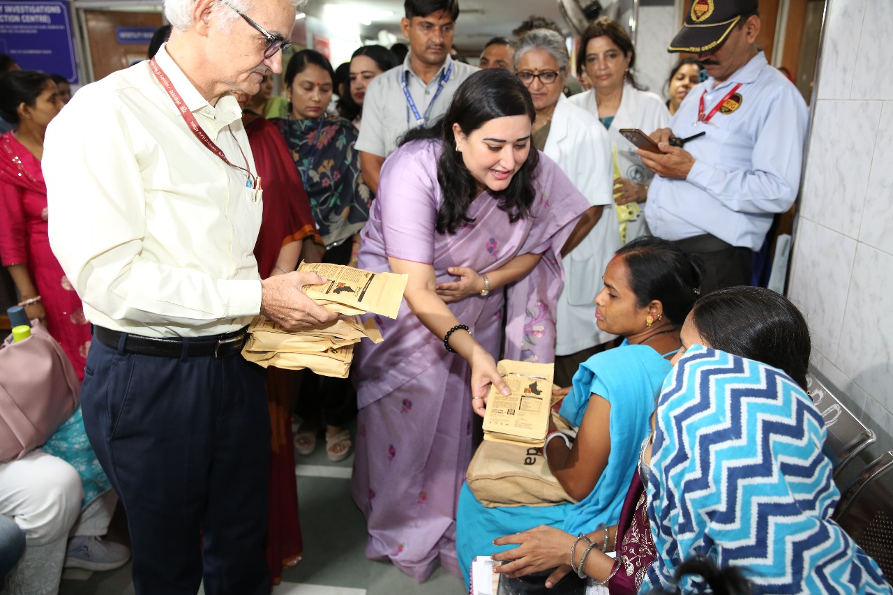In the sereies of ongoing programme of Swasth Nari Sahakt Parivaar Campaign launched by Prime Minister Modi on his birthday. Hospitals of Delhi also observing the campaign and conducting health camps for Women and children.. On Day four of the ongoing camp under the ‘Swasth Nari Sashakt Parivar Abhiyaan’, Hon’ble MP Ms. Bansuri Swaraj visited VMMC & Safdarjung Hospital to interact directly with patients, review services, and boost ongoing health initiatives. The camp is dedicated to furthering the vision of a healthier and more empowered India, especially through preventive health and awareness activities for women and girls. During her visit, Ms. Swaraj interacted warmly with patients and staff, understanding their experiences and health needs. She distributed sanitary napkins to adolescent girls and women, emphasizing the importance of menstrual hygiene—in line with creating a culture of health and dignity for all. In her address, she advocated for adopting millets for nutrition and underlined the critical link between women’s health and national strength (Nari Shakti, Nari Health). Continuing her focus on women empowerment, MP Swaraj lauded the team for ongoing yoga and NCD screening, mental health well-being sessions, and TB awareness campaigns happening daily at the camp. She praised the presence and leadership of the Director Dr Sandeep Bansal, Medical superintendent Dr Charu Bamba, Principal Geetika Khanna, AMS Dr. R P Arora, Dr. Krishan Kumar, Dr. Bindu Bajaj HoD Gynae, and the health team for their relentless efforts.