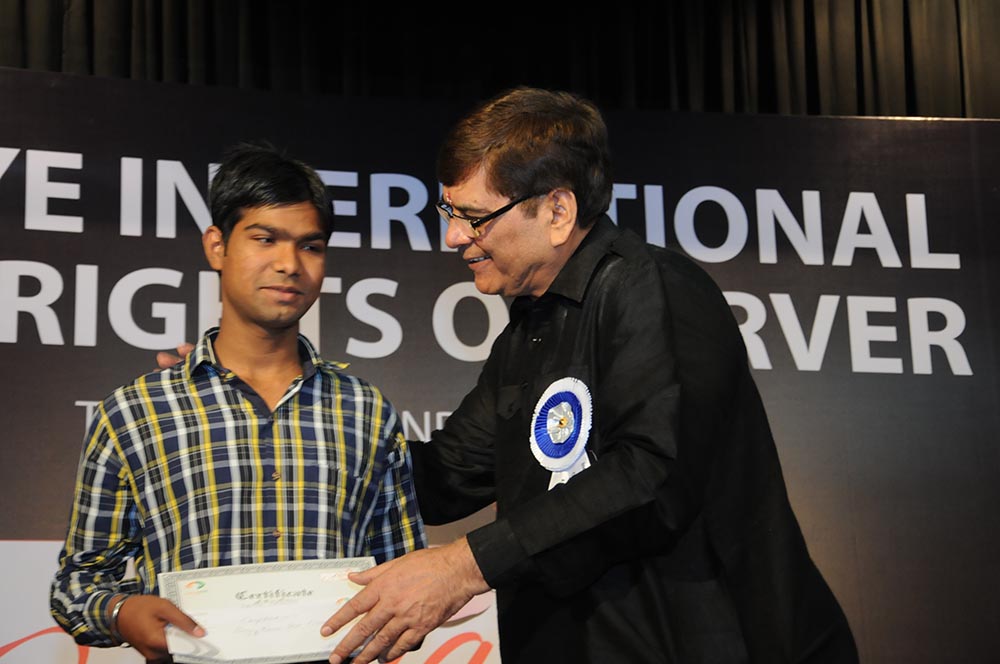 The great achievers who were honoured on the occasion were : Shri Rajesh Singh (IAS); Shri S. K. Rungta (Senior Advocate, Gen. Sec. of NFB, President of Asian Blind Union); Shri George Abraham (Founder, SCORE Foundation); Dr. Kusum Lata Malik (Senior Prof. Hindi Dept., DU); Dr. Anil Kumar Aneja ( Professor English Dept, DU); Dr. Garimella Subramaniam (Deputy Editor, The Hindu); Shri Shekhar Naik (Captain, Indian Blind Cricket Team); Shri Guman Ram Patel (Dy. Dir. (Retd.) Social Welfare, MP, Chhattisgarh); Shri A. K. Mittal (President, AICB; Secretary General, World Blind Union); Shri Jagdish Luthra (Founder, Rosemary Inst., Meerut); Shri P. Manoharan (Project Director, Southern India, NFB); Shri Puran Chand Nagpal (Ghazal Singer, Composer & Musician) & Mr. Divakar Sharma (SaReGaMaPa fame).